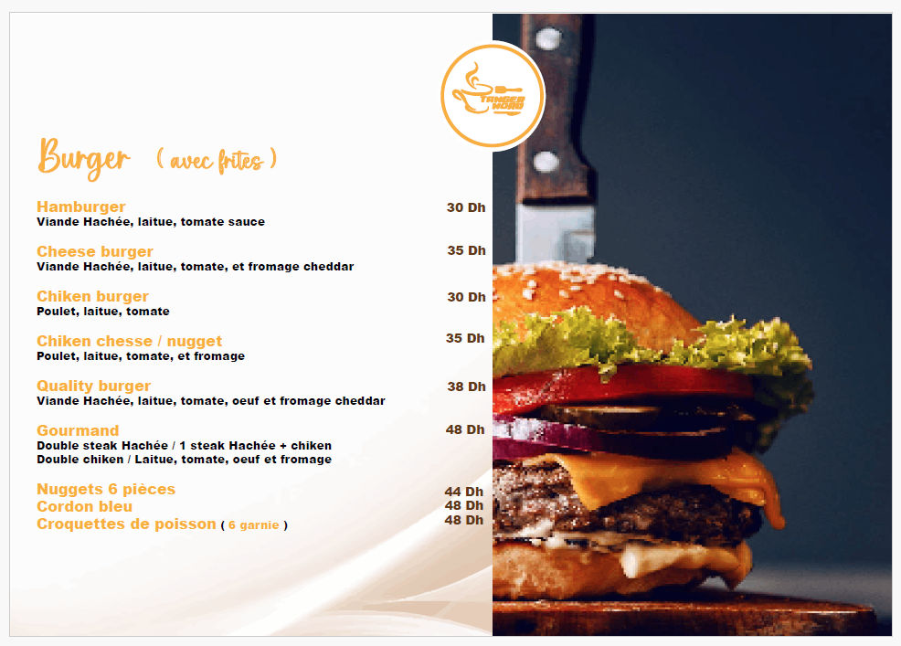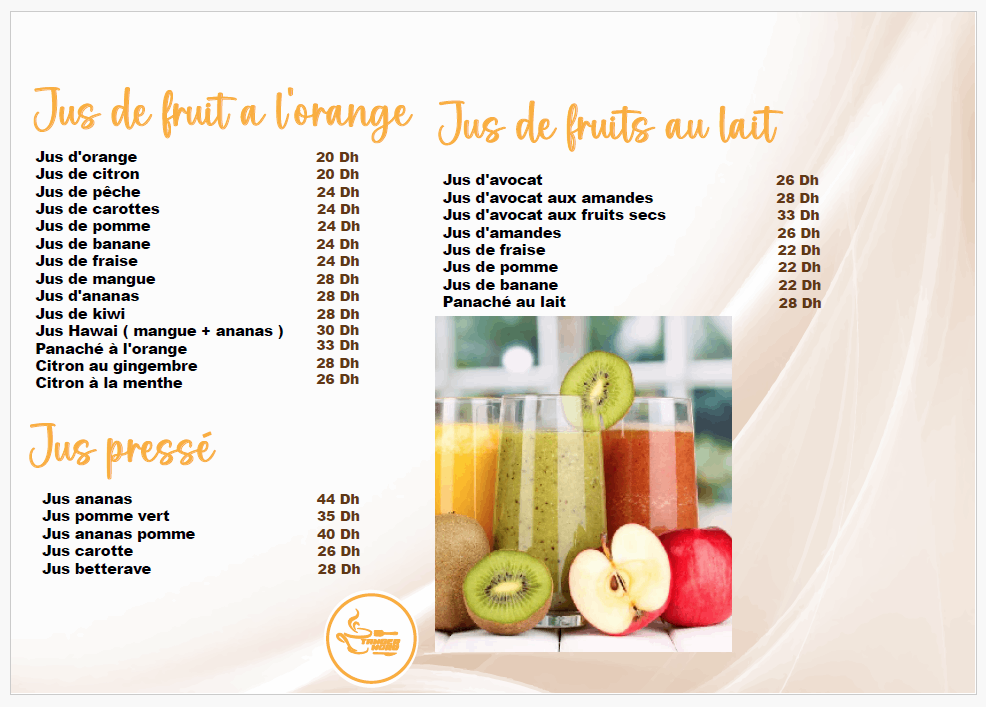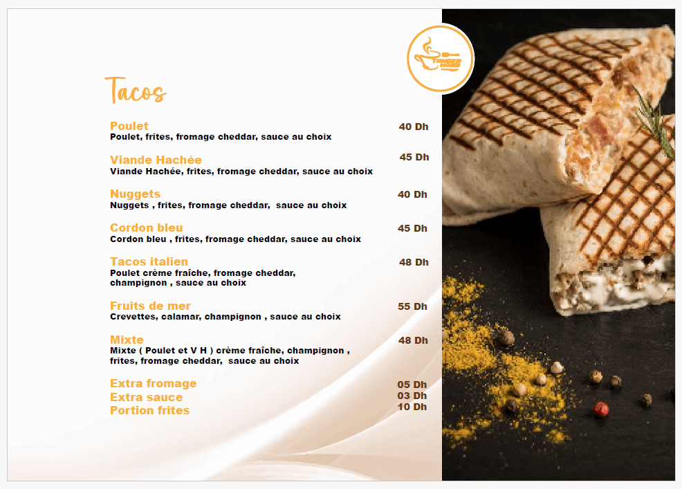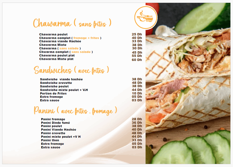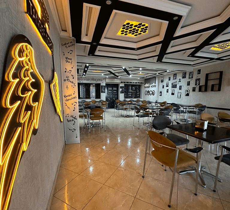 Situé en plein centre-ville, notre salon de thé vous accueille dans un cadre familial, chaleureux et convivial, idéal pour se détendre et partager de bons moments en famille ou entre amis. Nous proposons chaque jour une sélection de petits déjeuners variés et savoureux, préparés avec soin pour bien commencer la journée. Tout au long de la journée, notre établissement se transforme également en restaurant, offrant une carte riche et diversifiée adaptée à tous les goûts. Vous pourrez y déguster de délicieuses pizzas, des chawarmas gourmands, ainsi que des plats traditionnels marocains comme le tajine, sans oublier nos savoureuses brochettes préparées à la commande. Pour plus de confort, nous mettons également à votre disposition un service de livraison rapide, afin de savourer nos spécialités chez vous ou sur votre lieu de travail. Notre objectif est de vous offrir une expérience culinaire de qualité, dans une ambiance agréable, avec un service attentif et efficace.