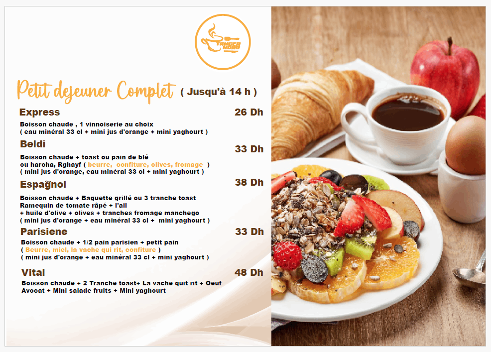 Une large variété de saveurs pour bien commencer votre journée dans le centre de Tanger.